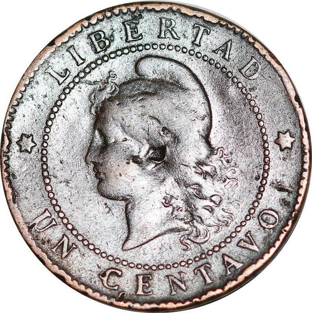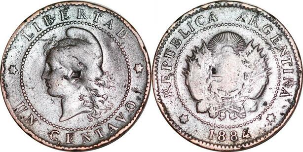 O9882 Argentina Un Centavo Capped Liberty Head 1884 -> Make offer