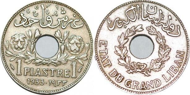 O9888 Lebanon Liban Un Piastre Cèdre 1933 -> Make offer