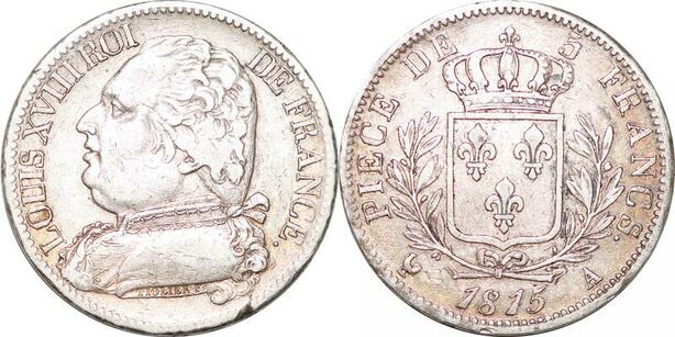 O9923 Rare 5 Francs Louis XVIII 1815 A Paris Argent Silver -> Make offer