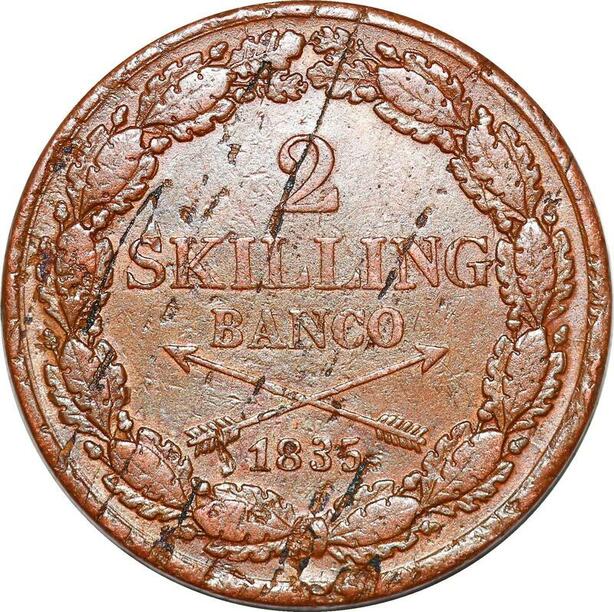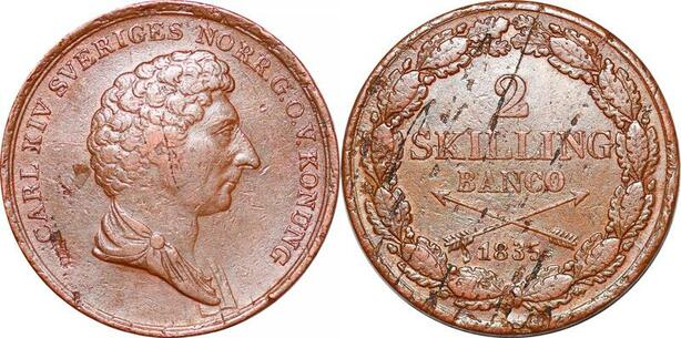 O9924 Sweden 2 Skilling Banco Carl XIV Carl Johan 1835 XF-> Make offer