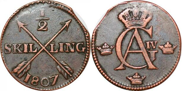 O9931 Sweden 1/2 Skilling Gustav IV Adolf Avesta mint 1807 -> Make offer