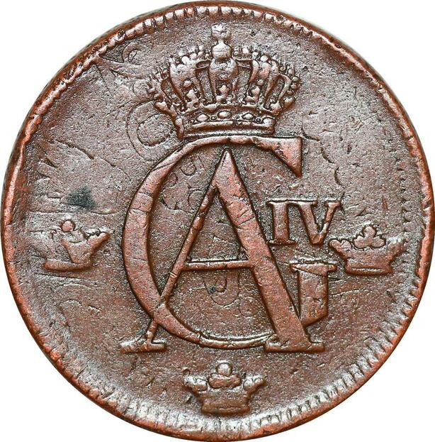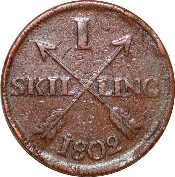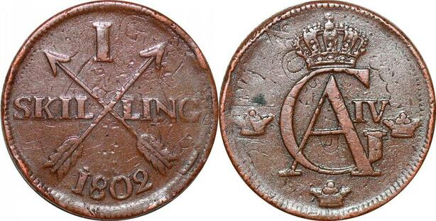 O9932 Sweden 1 Skilling Gustav IV Adolf 1802 double strike 2 Ore XF