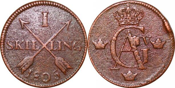 O9933 Scarce Sweden 1 Skilling Gustav IV Adolf Stockholm mint 1805 XF+ !!