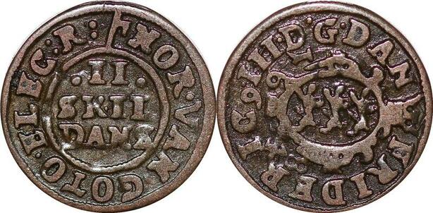 O9953 Very Scarce Denmark 2 Skilling Danske Frederik III Rex 1648 Silver