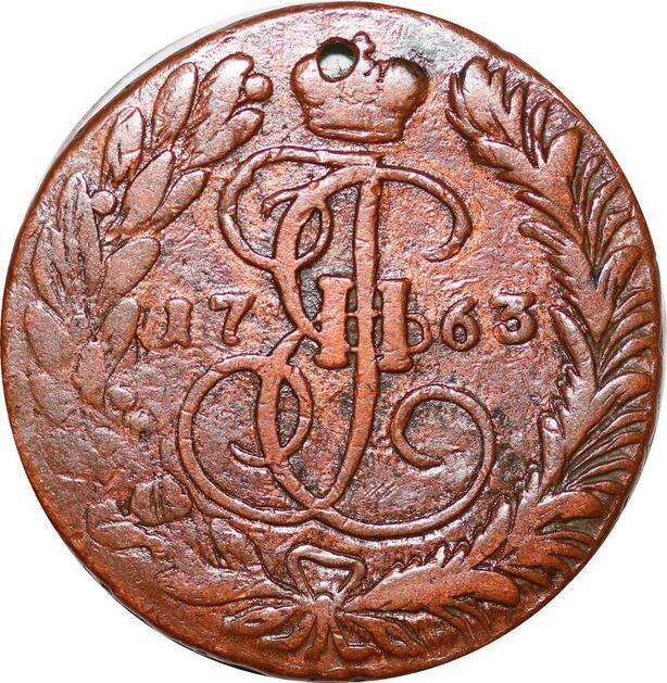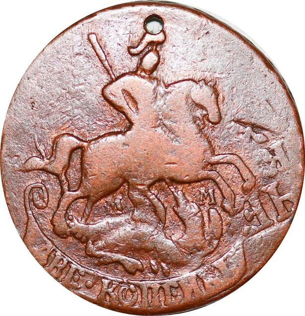O9961 Russia 2 Kopecks Ekaterina II 1763 ММ overstruck 4 Kopecks of Peter III