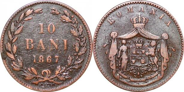 O9986 Romania 10 Bani Carol I 1867 Watt & Co -> Make offer