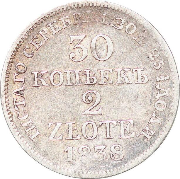O9992 Scarce Poland 2 Złote 30 Kopěek Nikolai I 1838 Silver -> Make offer