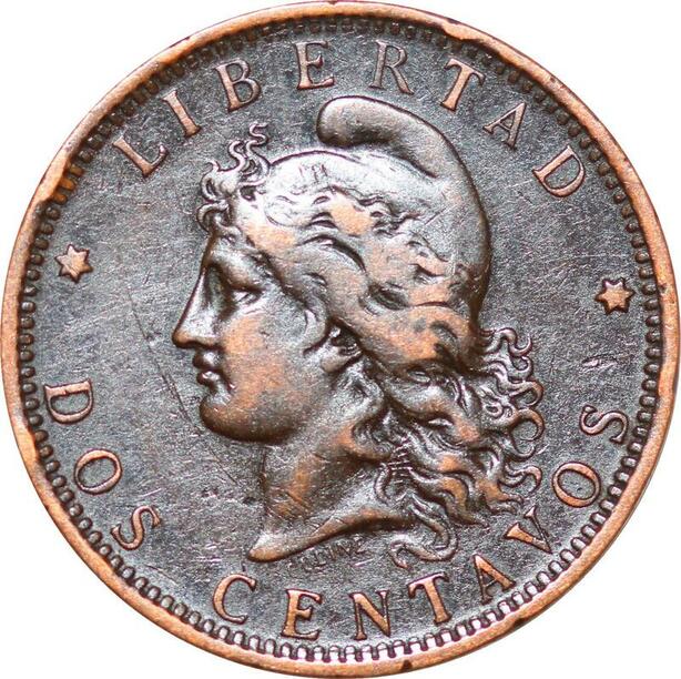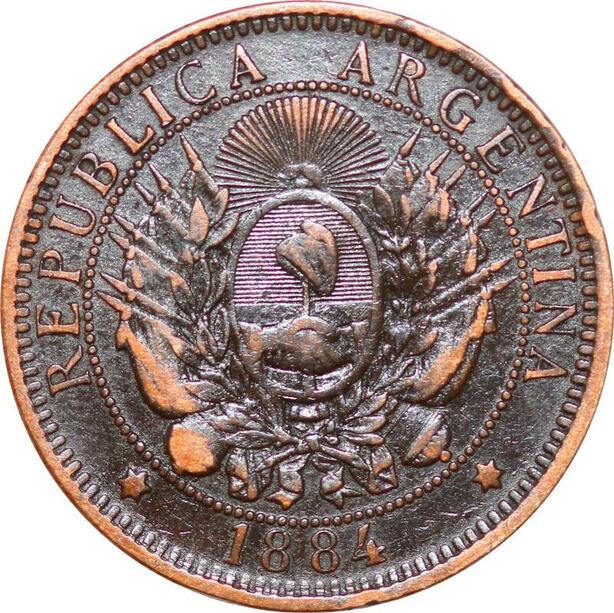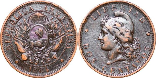 O9999 Argentina 2 Centavos Capped Liberty Head 1884 AU -> Make offer
