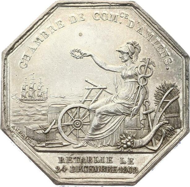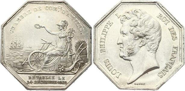 O4107 Rare Jeton Louis-Philippe Chambre commerce Amiens Oise Argent SUP