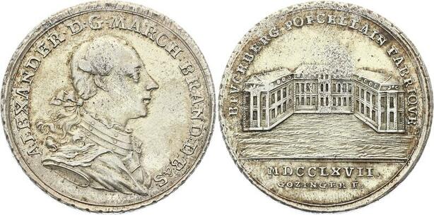 O4131 Scarce Medal Germany Brandeburg Karl Alexander 1767 Gözinger Silber