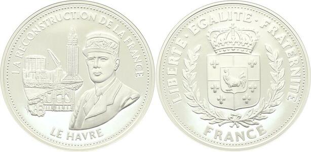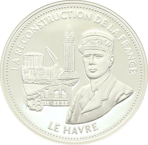 O4191 Medaille Reconstruction France Général de Gaulle Le Havre Argent BE Proof