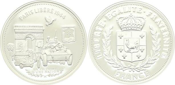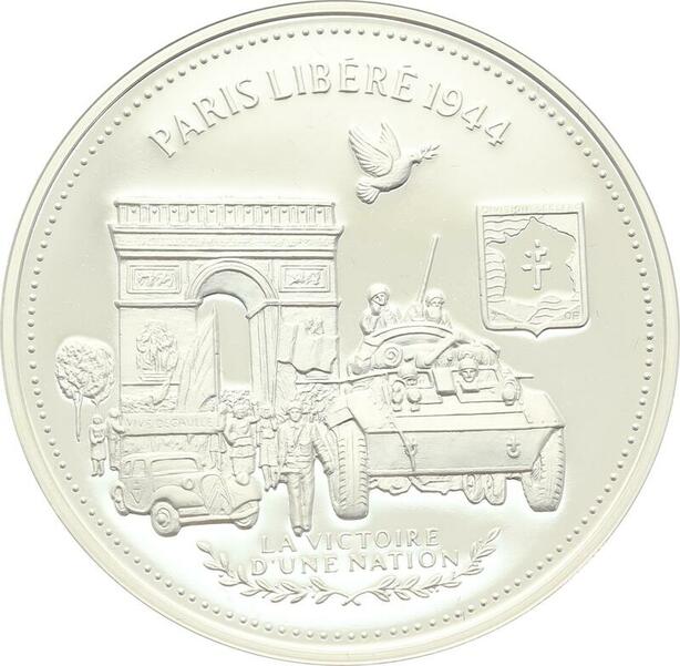 O4193 Medaille Paris Libéré 1944 Arc Triomphe Char Argent BE Proof