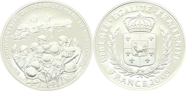 O4198 Medaille 65e Anniv Debarquement Normandie Plages 2009 Argent BE Proof