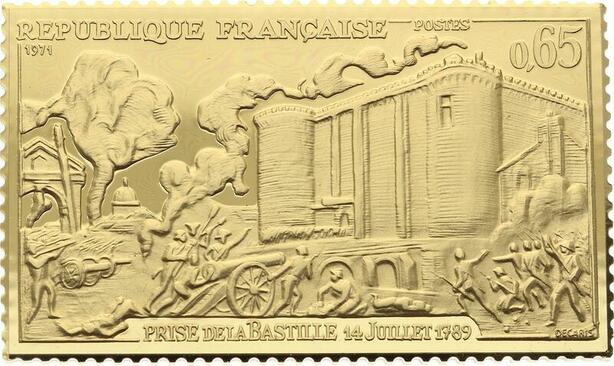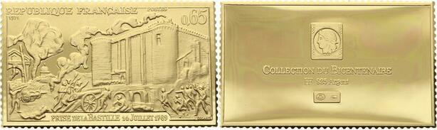 O4209 Timbre Monnaie 65 Centimes Prise Bastille 14 juillet 1789 Vermeil Proof
