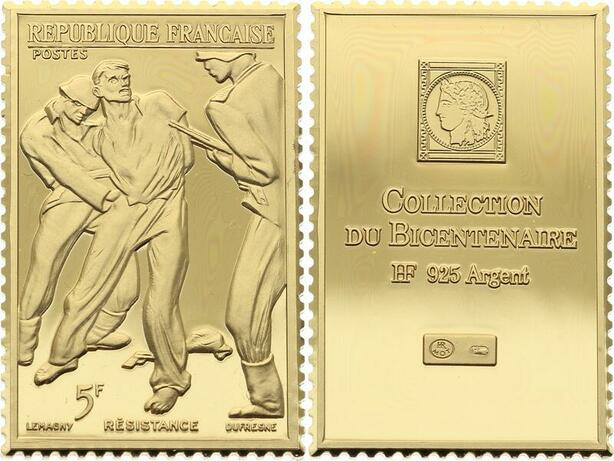 O4218 Timbre Monnaie 5 Francs Résistance Vermeil Proof BE ->M offre