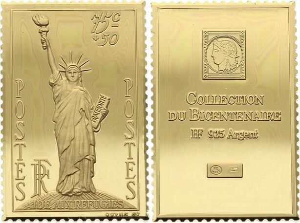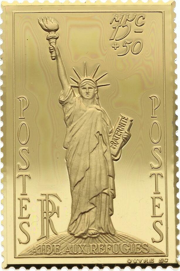 O4224 Timbre Monnaie 75 Centimes Statue Liberté Aide Réfugiés Vermeil Proof BE