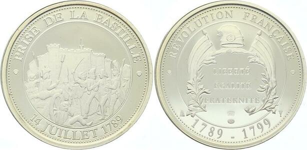 O4229 Medaille Révolution Prise Bastille 14 juillet 1789 Argent Proof BE