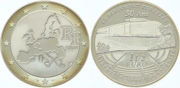 O4276 France 1 1/2 Euro Parlement Européen Argent 2008 Proof BE ->Make offer