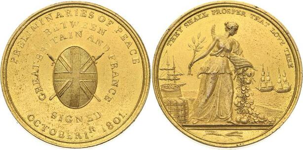 O4397 Scarce Medal Great Britain Preliminaries Peace Treaty Amiens 1801 UNC
