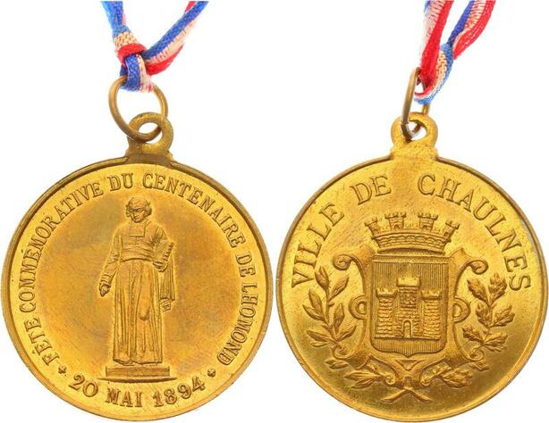 O4451 Medaille Fête Commémorative Centenaire Lhomond Chaulnes 1894->Make offer