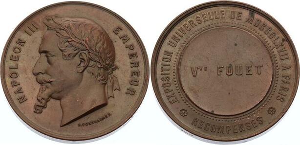 O4474 Medaille Napoléon III Fouet Exposition Universelle Paris 1867 Ponscarme