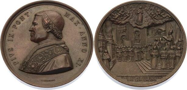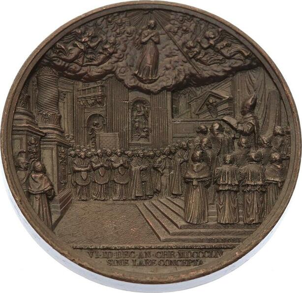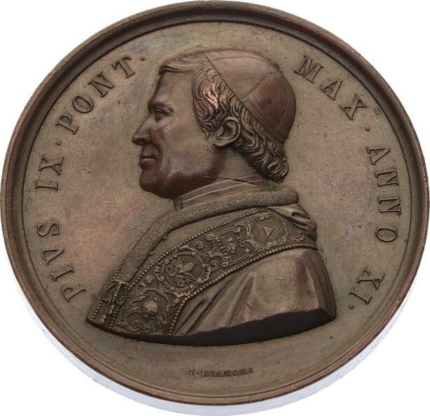 O4535 Scarce Medaglia Pio IX Giovanni Mastai Ferretti Bianchi 1854 Throne SUP