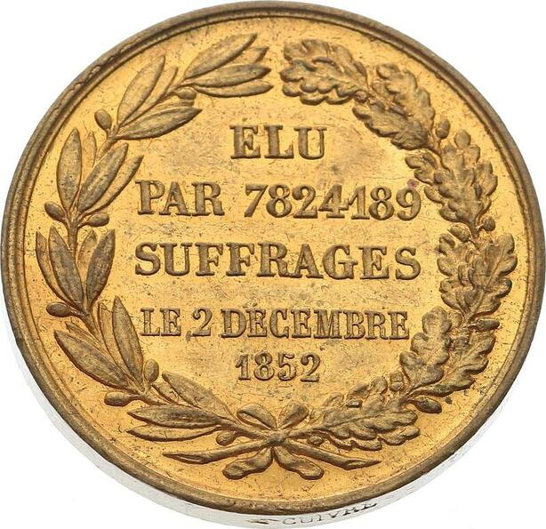 O4561 Medaille Napoléon III Elu Suffrages 1852 Dantzell SUP -> Make offer