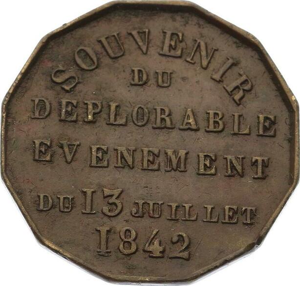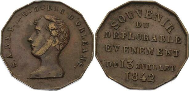O4566 Medaille Ferdinand Philippe duc Orléans Souvenir Déplorable Eve. 1842 >FO