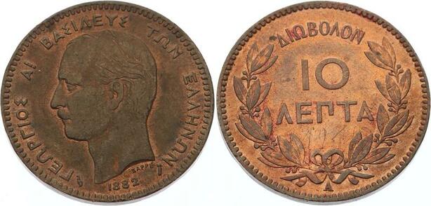 O4592 Rare Greece 10 Lepta George I 1882 A Paris SUP ->Make offer