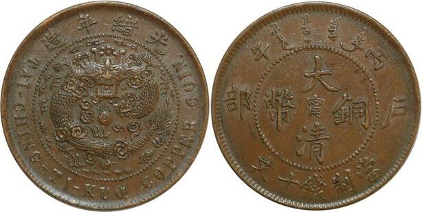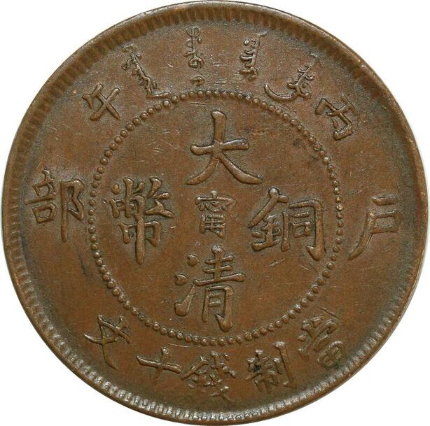 O4758 Verz Rare China 10 Cash Kiangnan 1906 Y-10k.3 AU+++ UNC