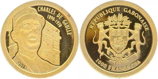 O4982 Gabon 1000 Francs CFA General de Gaulle 2013 Or Gold 999% BE PF Proof