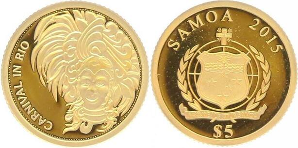O4997 Samoa 5 Dollars Carnaval Rio 2015 Or Gold 999% BE PF Proof ->Make offer