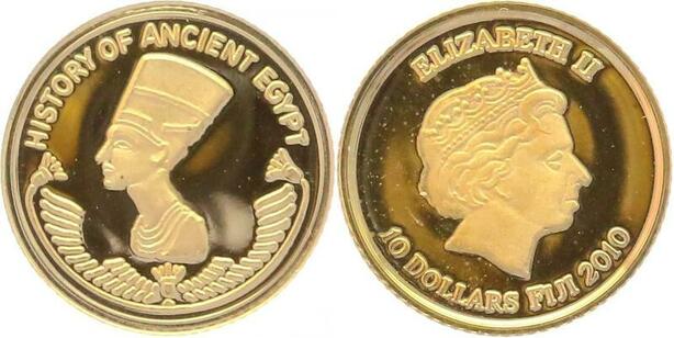 O5034 Fiji 10 Dollars Elizabeth II Egypt 2010 Or Gold 999% BE PF Proof