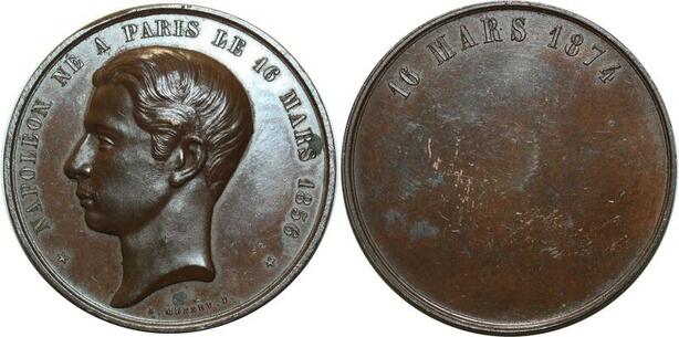 O5065 Rare Medaille Napoléon IV majorité 18 ans 16 Mars 1874 Merley SUP