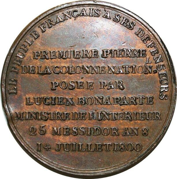 O5082 Rare Medaille Consulat Napoleon Colonne nationale Place Vendôme 1800