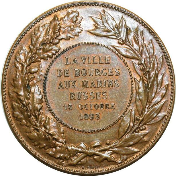 O5084 Rare Medaille Russia Bourges aux marins russes 15 octobre 1893 SUP+