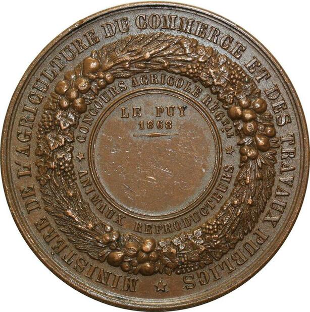O5085 Rare Medaille Napoleon III 1868 Agriculture Award Le Puy en Velay Barre
