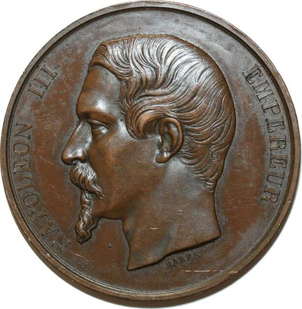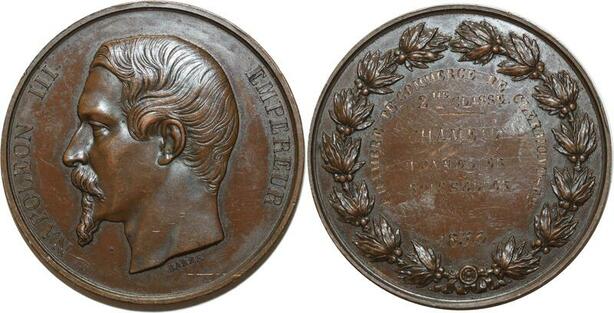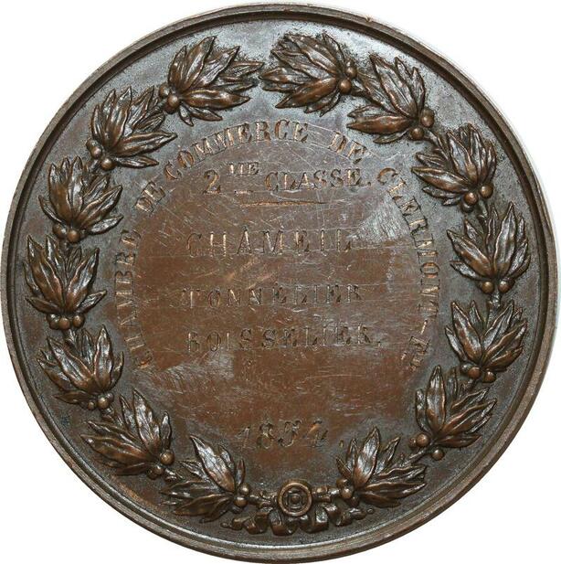 O5088 Rare Medaille Napoleon III Commerce 1854 Clermont Fer. Chameil Barre SUP