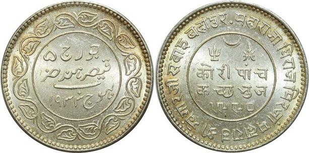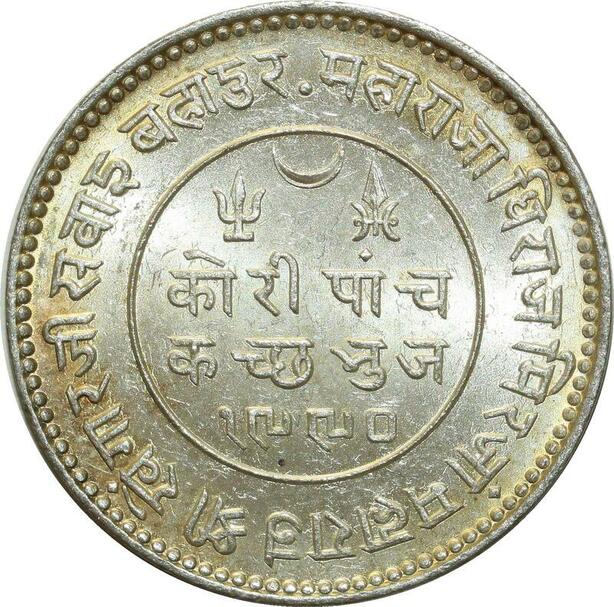 O5121 India Princely States Kutch 5 Kori 1933 1989 1990 KM Y# 53a UNC !! BU