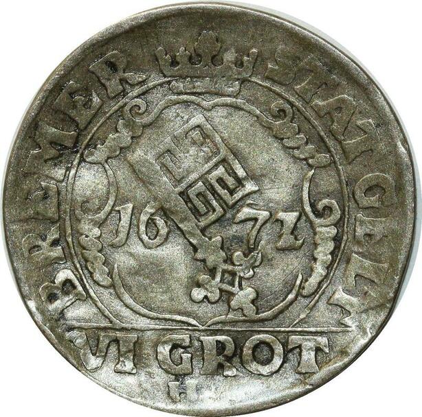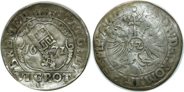 O5138 German Bremen 6 Grote Léopold I 1/12 Taler 1672 Silver ->M offer