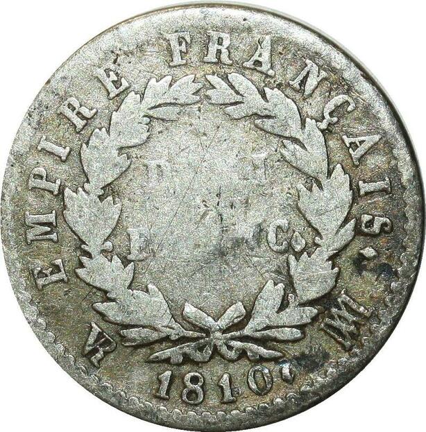 O5152 Très Rare demi-Franc 50 centimes Napoléon 1810 MA Marseille Argent