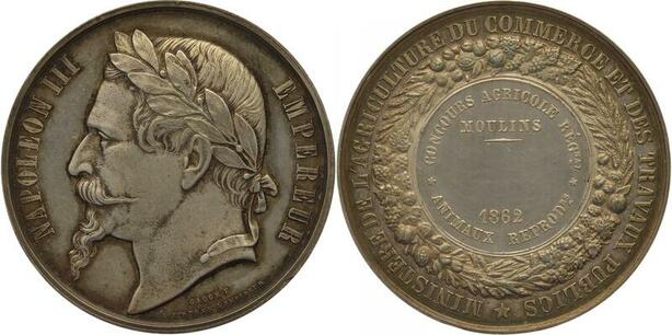 O5175 Rare Coffret Napoleon III Moulins Animaux 1862 Argent SPL ->Make offer