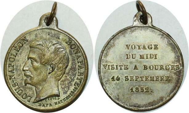 O5184 Medaille Napoleon III Louis Bonaparte Voyage Midi Bourge 1852 SUP