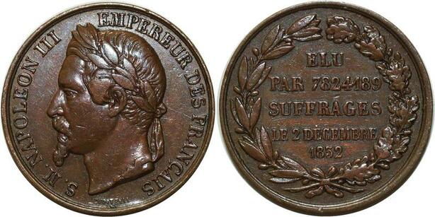 O5188 Medaille Napoleon III Dantzell Elu suffrages 1852 ->Make offer