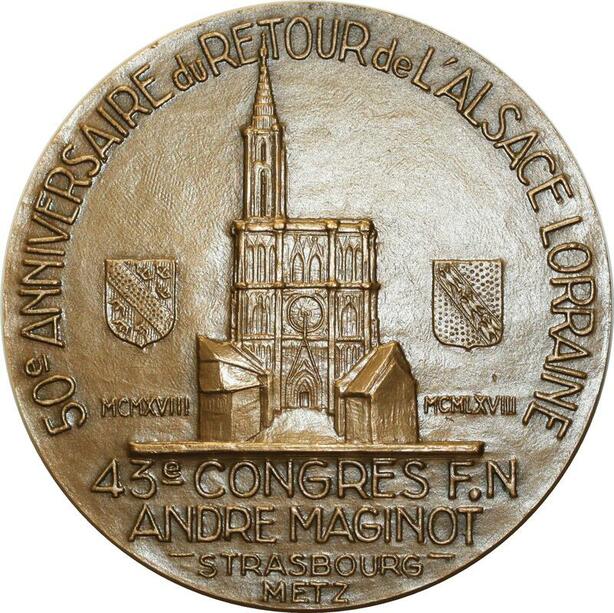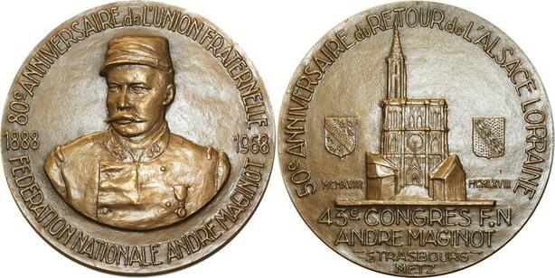 O5200 Coffret Medaille André Maginot 1888 1968 Alsace Lorraine 50 ans SPL
