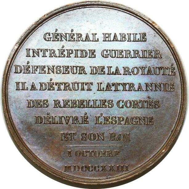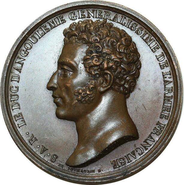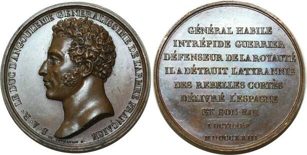 O5213 Rare Medaille duc Angoulème Cortès Spain Andrieu 1823 Desnoyers SPL