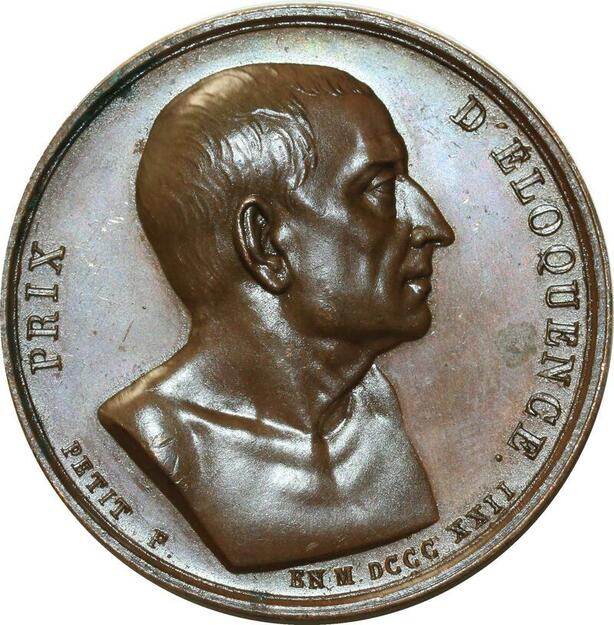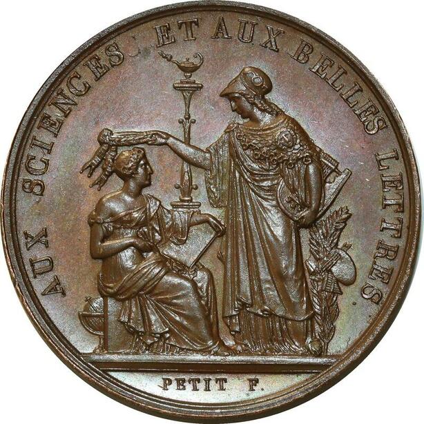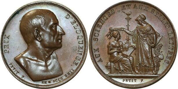 O5230 Rare Medaille Prix D'éloquence 1822 Sciences Belles Lettres Desnoyers SPL