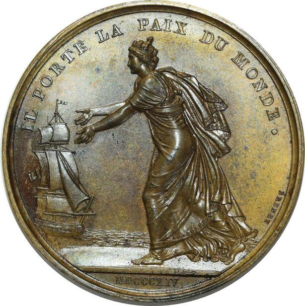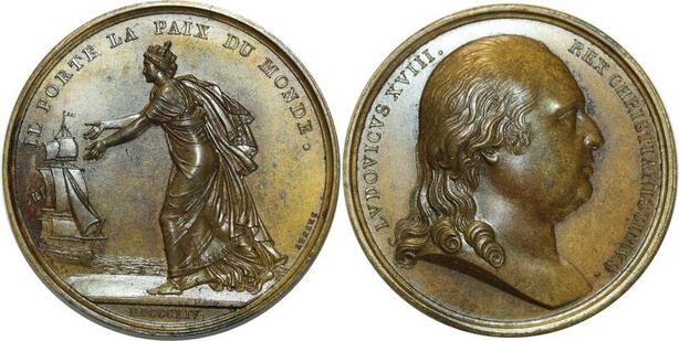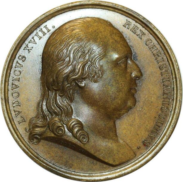 O5254 Rare Medaille Louis XVIII Exil Calais 1814 Andrieu Baron Desnoyers SPL
