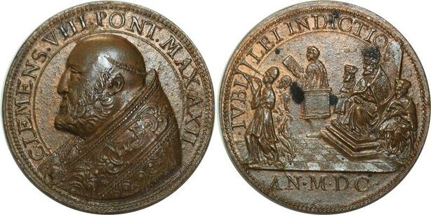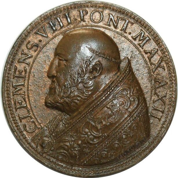 O5268 Scarce Medal Papal Vatican Clemens VIII MDC Baron Desnoyers UNC