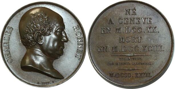 O5293 Switzerland Medal Charles Bonnet Philosophe Bovy 1823 Baron Desnoyers SPL